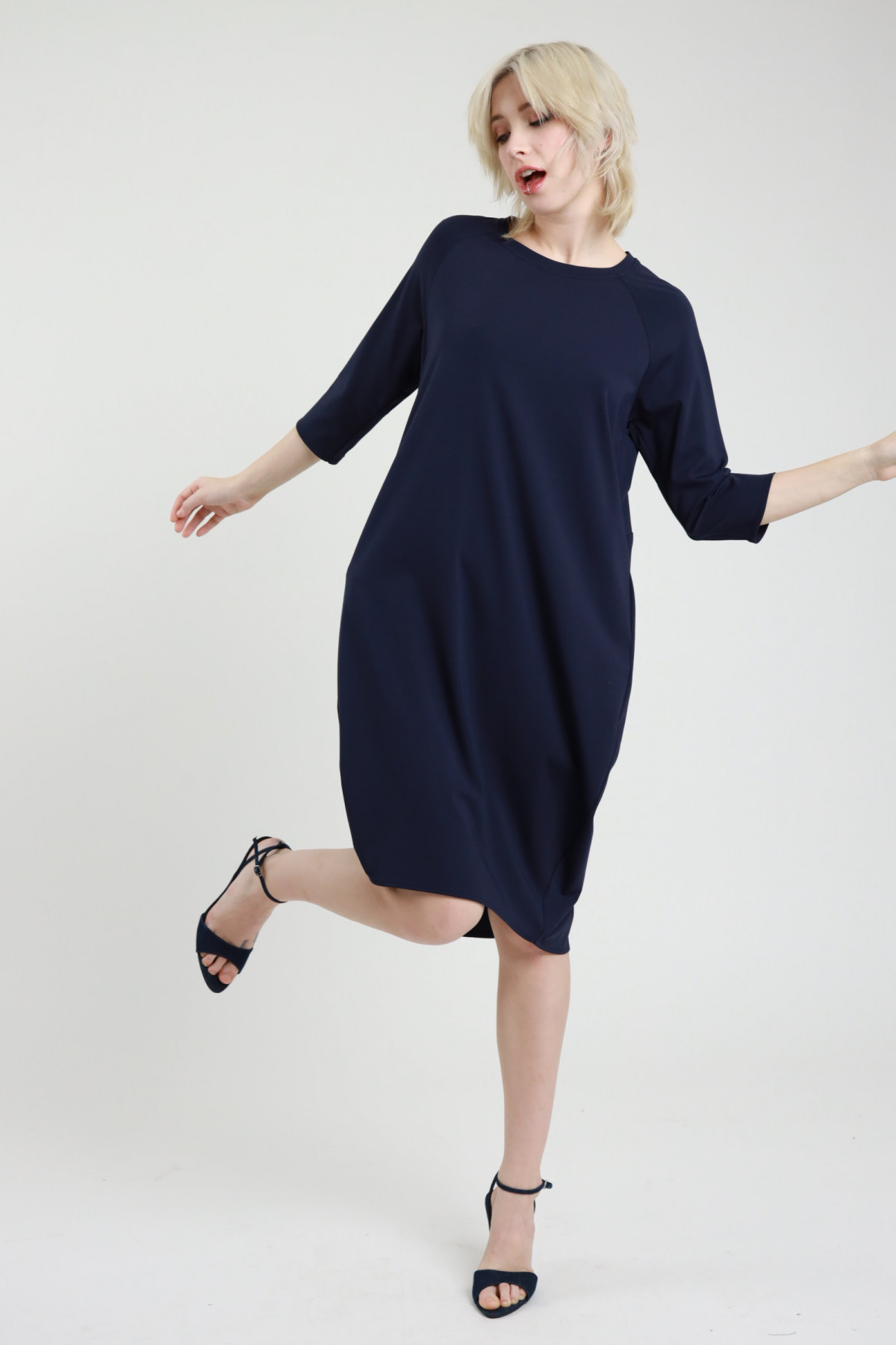 Abito a Ovetto in Viscosa Elasticizzata, Maniche 3/4. 57%vi 35%pa 8%ea