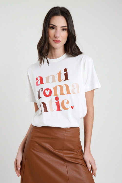 T-Shirt Over in Cotone con Scritta Multicolor "Anti Romantic". 100%co
