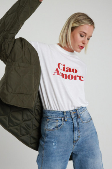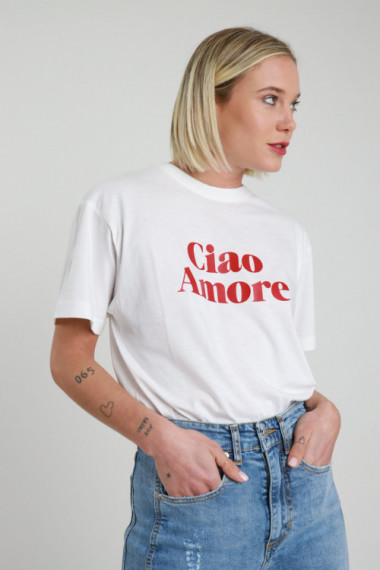 T-Shirt in Cotone scritta "Ciao Amore". 100%co