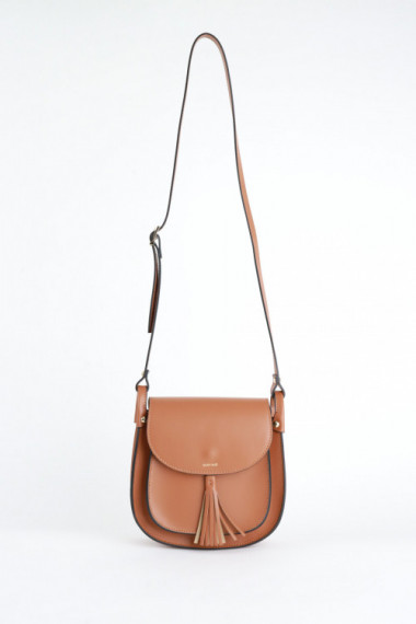 Borsa Tracolla in Pelle con Patta Chiusura Bottone a Clip e Nappa.