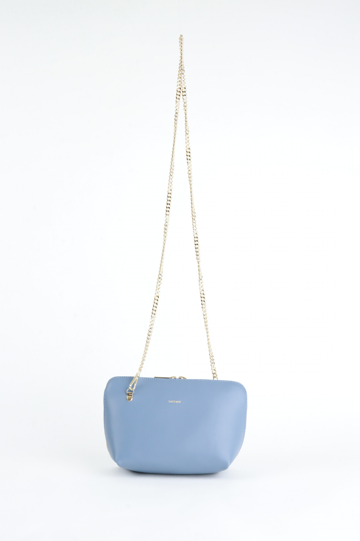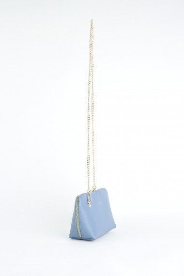 Clutch aus Leder mit doppeltem Reißverschluss und goldenem Kettenschulterriemen. 100 % links