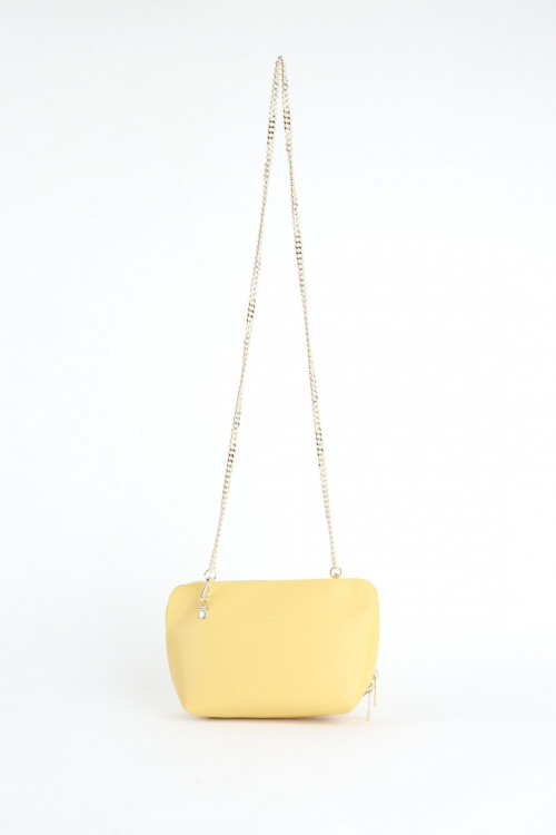 Clutch aus Leder mit doppeltem Reißverschluss und goldenem Kettenschulterriemen. 100 % links