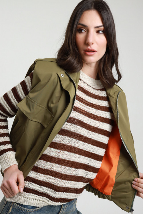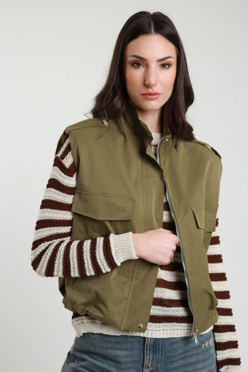 Sleeveless Bomber Jacket with Big Pockets and Orange Interior, Zip Closure and Clip Buttons. 100%pl