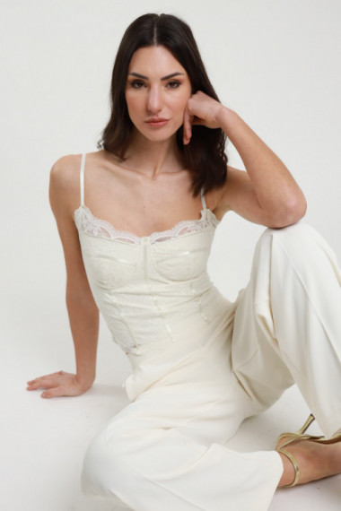 Spitzenoberteil, dünne Träger, mit Körbchen.  90%ny 10%ea