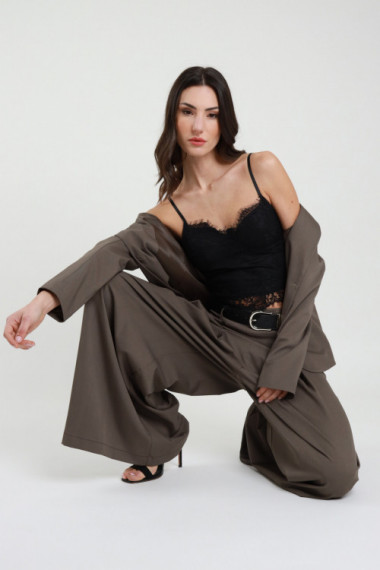 Palazzo-Hose mit Falten auf der Vorderseite. Nahtloser Bund, seitlicher Reißverschluss, eingearbeiteter Gürtel. 78 %pl 18 %vi 4 %ea