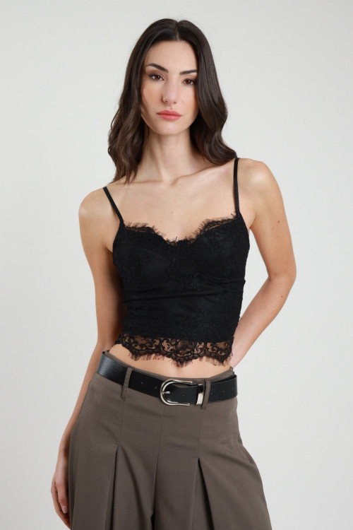 Crop-Top aus Spitze mit schmalen Trägern und gepolsterten Körbchen. 90%ny 10%ea