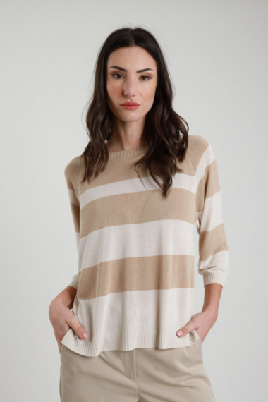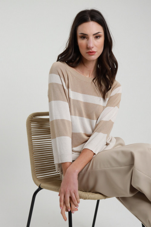 Maglia A Righe Larghe, Scollo Barchetta e Maniche 3/4. 100%vi