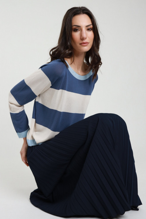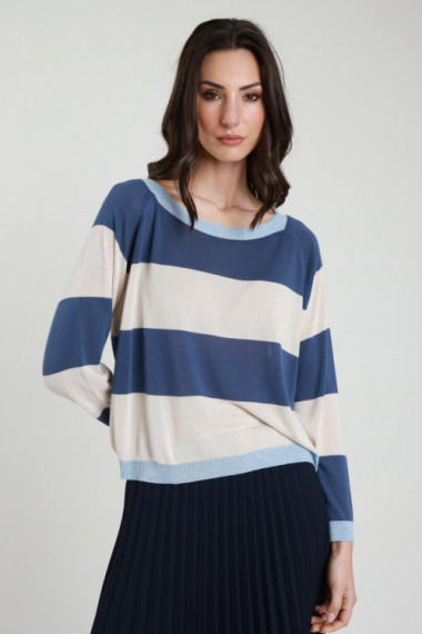 Gestreifter Viskosepullover + gerippte Kantendetails aus Lurex. 100 %vi +80 %vi 10 %pl 10 %pa