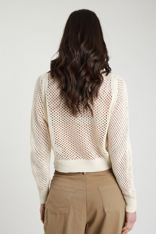 Perforierter Crop-Cardigan, Knopfverschluss. 50 % CO 50 % AC