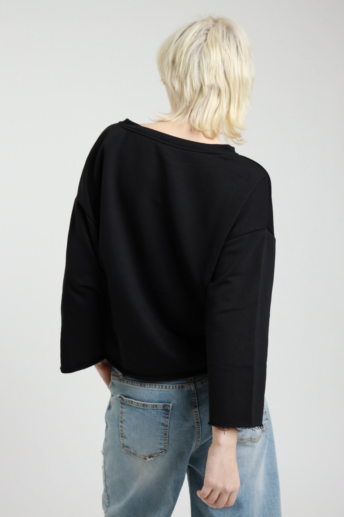 Sweatshirt mit V-Ausschnitt am Ausschnitt, Cabochon, „Brooklyn“-Schriftzug, Box-Fit und ungesäumtem Schnitt am Saum und an den Ärmeln. 65%co 35%pl