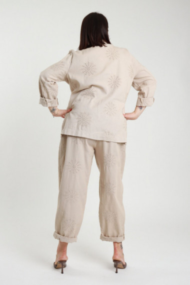 Giacca Monopetto in Bull Denim in Sangallo con Tasche Applicate - Linea Curvy Susy Star.