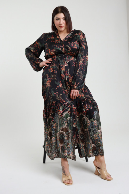 Kleid aus fließendem Stoff mit Abnähern an den Schultern und weiten Ärmeln – Linie Curvy Susy Star. 96%pl 4%ea