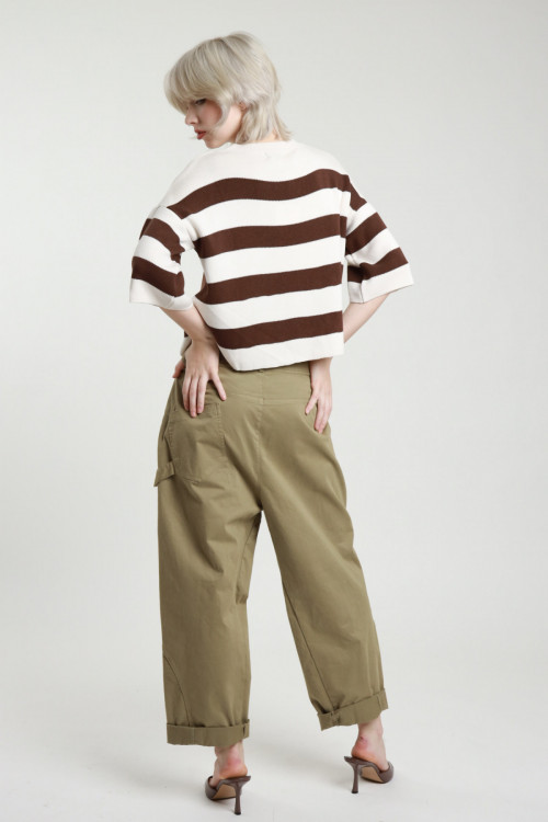 Bananenhose mit großen Taschen, Reißverschluss und Knopfverschluss und Taillengürtel. 100 % co