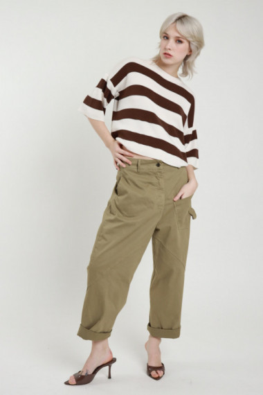 Elastische, eiförmige Hose mit mittlerer Taille, 2 Taschen, Reißverschluss und Knopfverschluss. 61%co 36%pa 3%ea