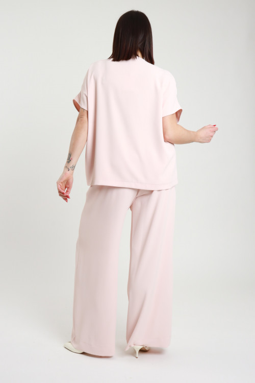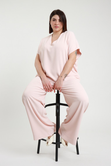 Completo Elasticizzato con Blusa Mezze Maniche e Scollo a V e Pantalone a Palazzo - Linea Curvy Susy Star.