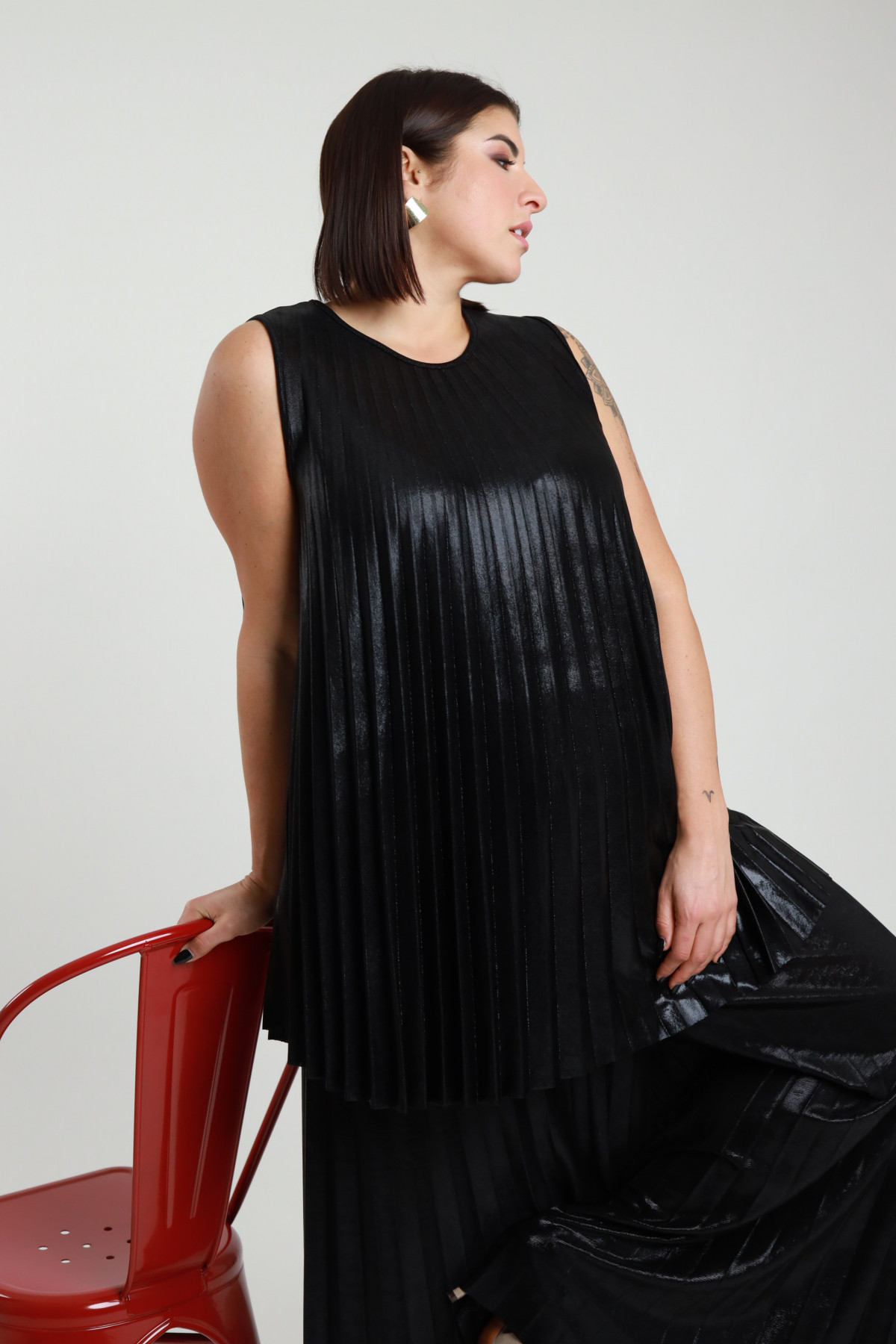 Langes ausgestelltes Kleid, V-Ausschnitt mit Knopf – Linie Curvy Susy Star. 100%pl