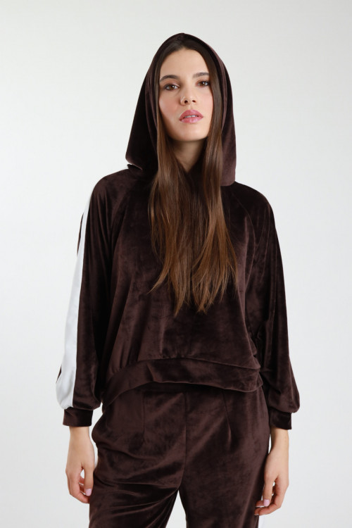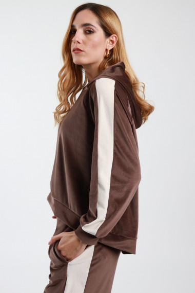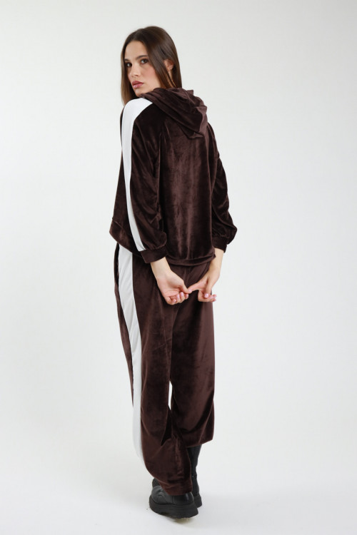 Completo In Ciniglia Composto Da Felpa Con Cappuccio e Pantaloni Over. Entrambi Con Bande Laterali.