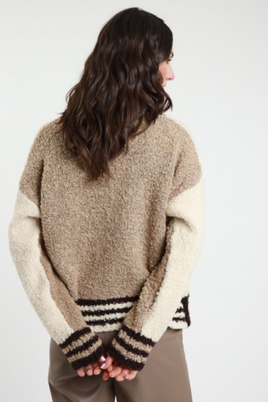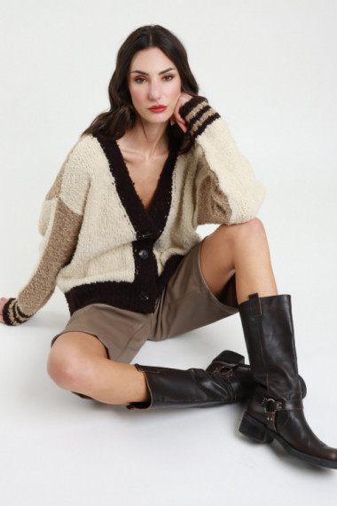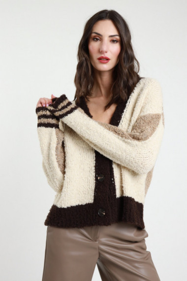 Cardigan Multicolor Over in Boucle Scollo a V con Chiusura Bottoni.