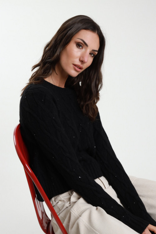 Geflochtener Pullover + Mikropailletten