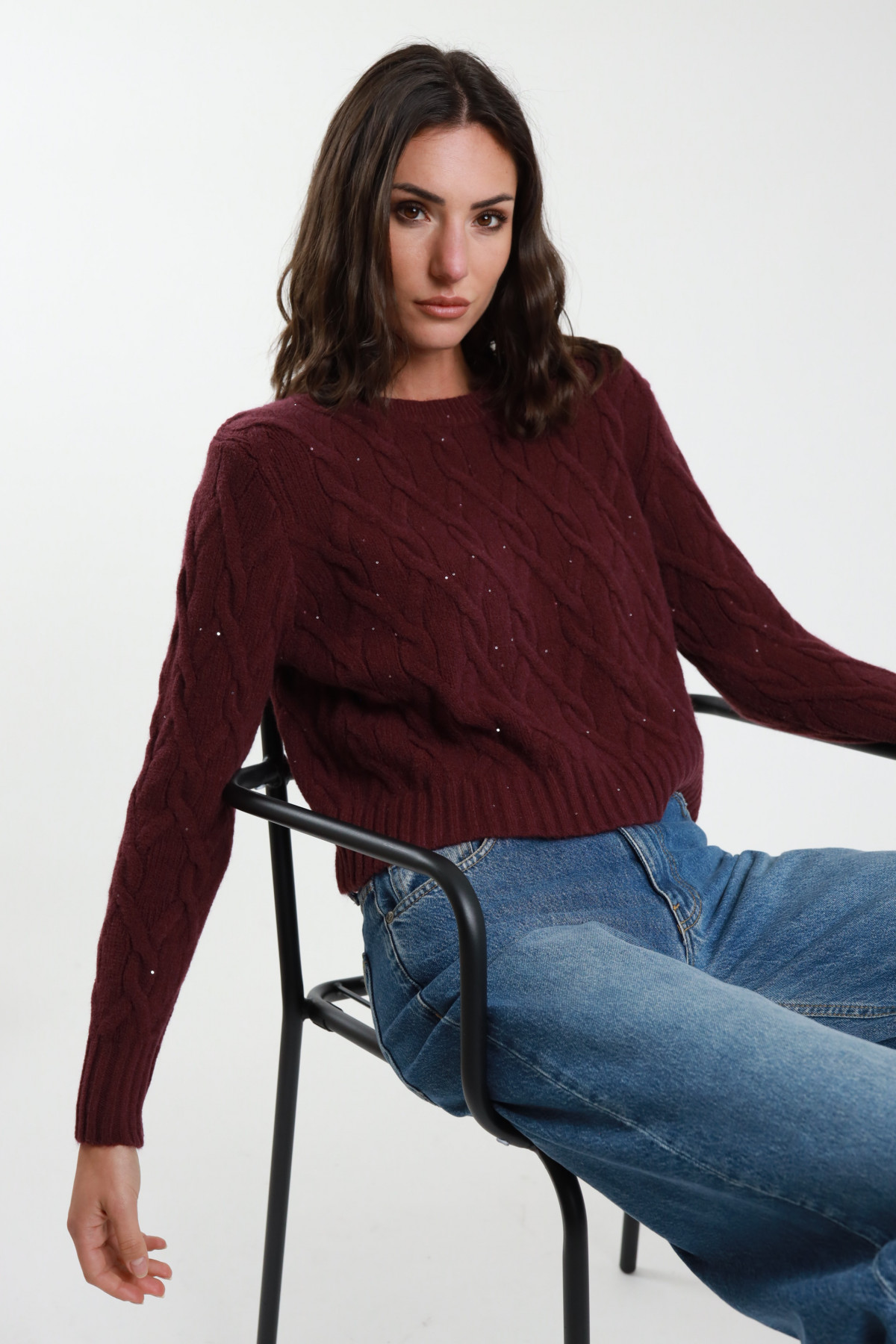 Maglioncino Gircollo con Trecce e Paillettes. Orli a Coste. Slim Fit.