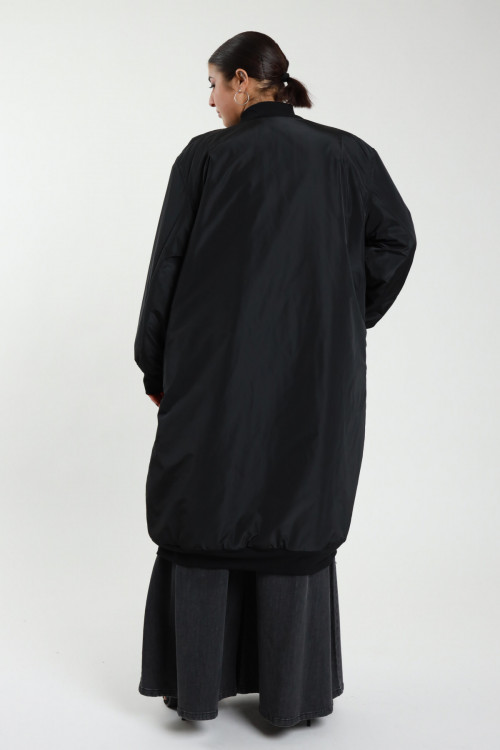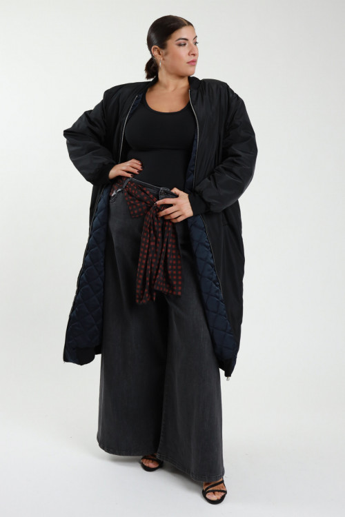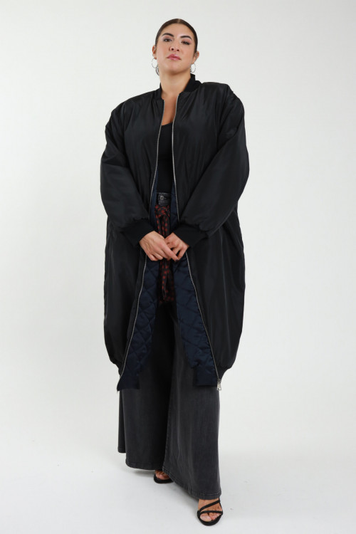 Lange wattierte Bomberjacke mit Reißverschluss und Seitentaschen – Curvy Susy Star-Linie. 100%pl