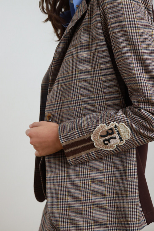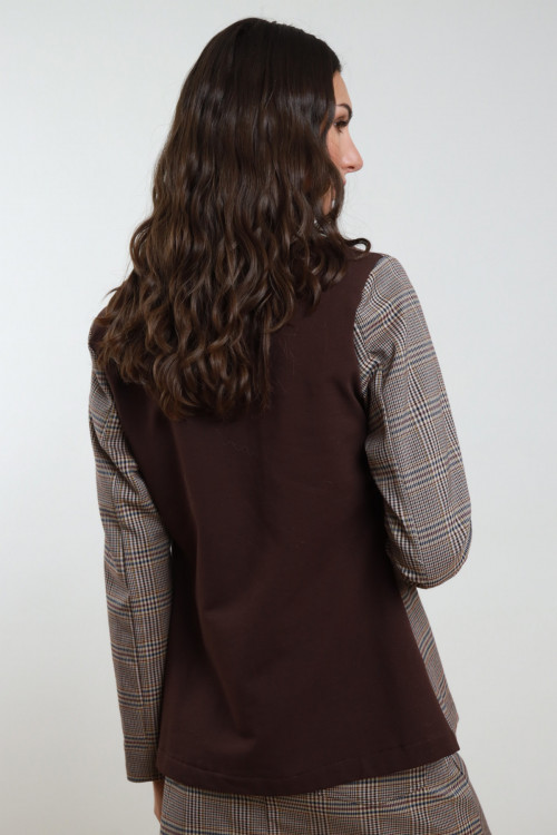Giacca Check con Rever in Maglia e Dettaglio Patch sul Fronte.