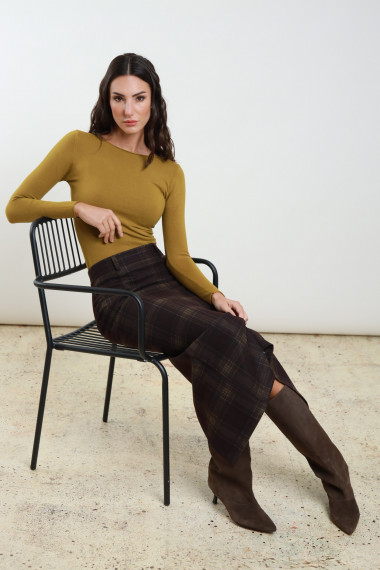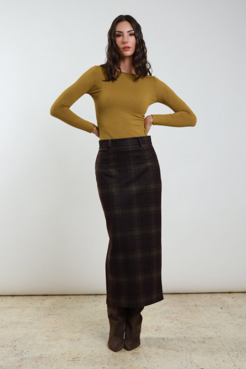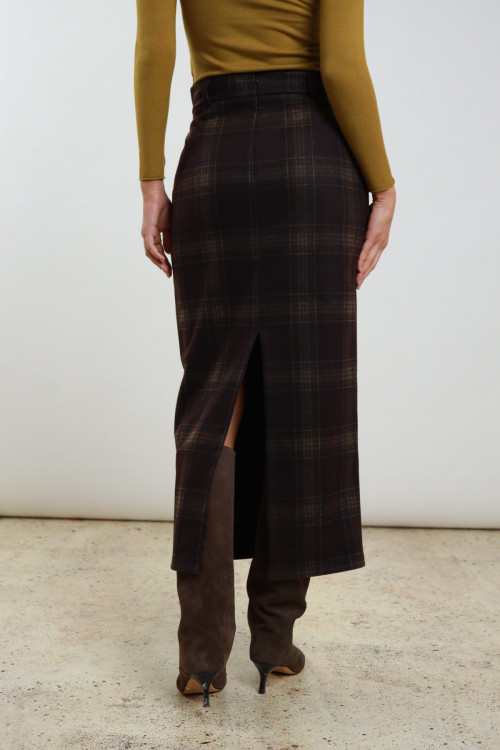 Longuette in Schach mit Schlitz und Reißverschluss, das auf der Rückseite versteckt ist. 80%PL 15%VI 5%EA