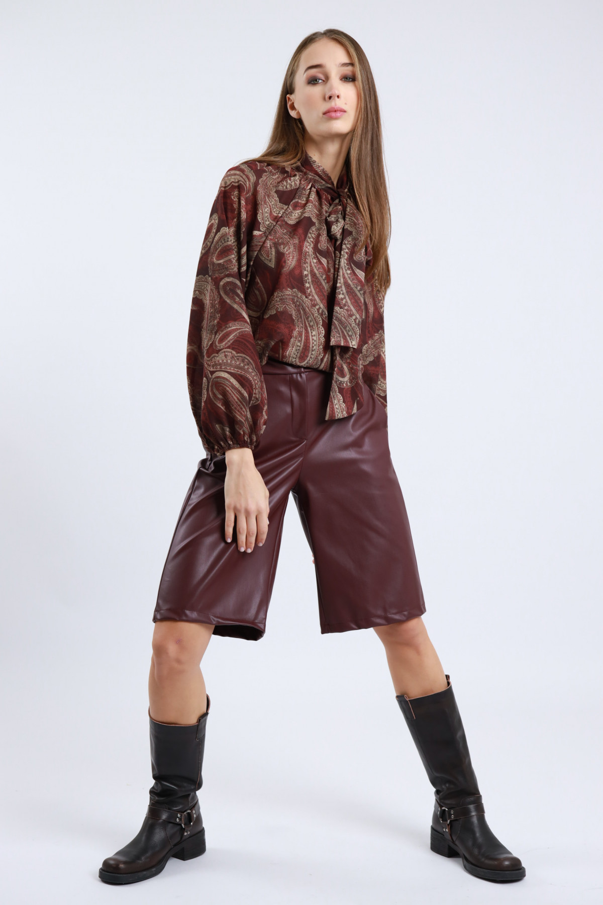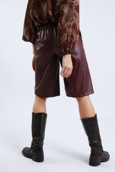 Bormuda in Eco -Leder mit Reißverschluss und Knopf, elastische Taille, 2 Taschen. 50%PL 50%PU