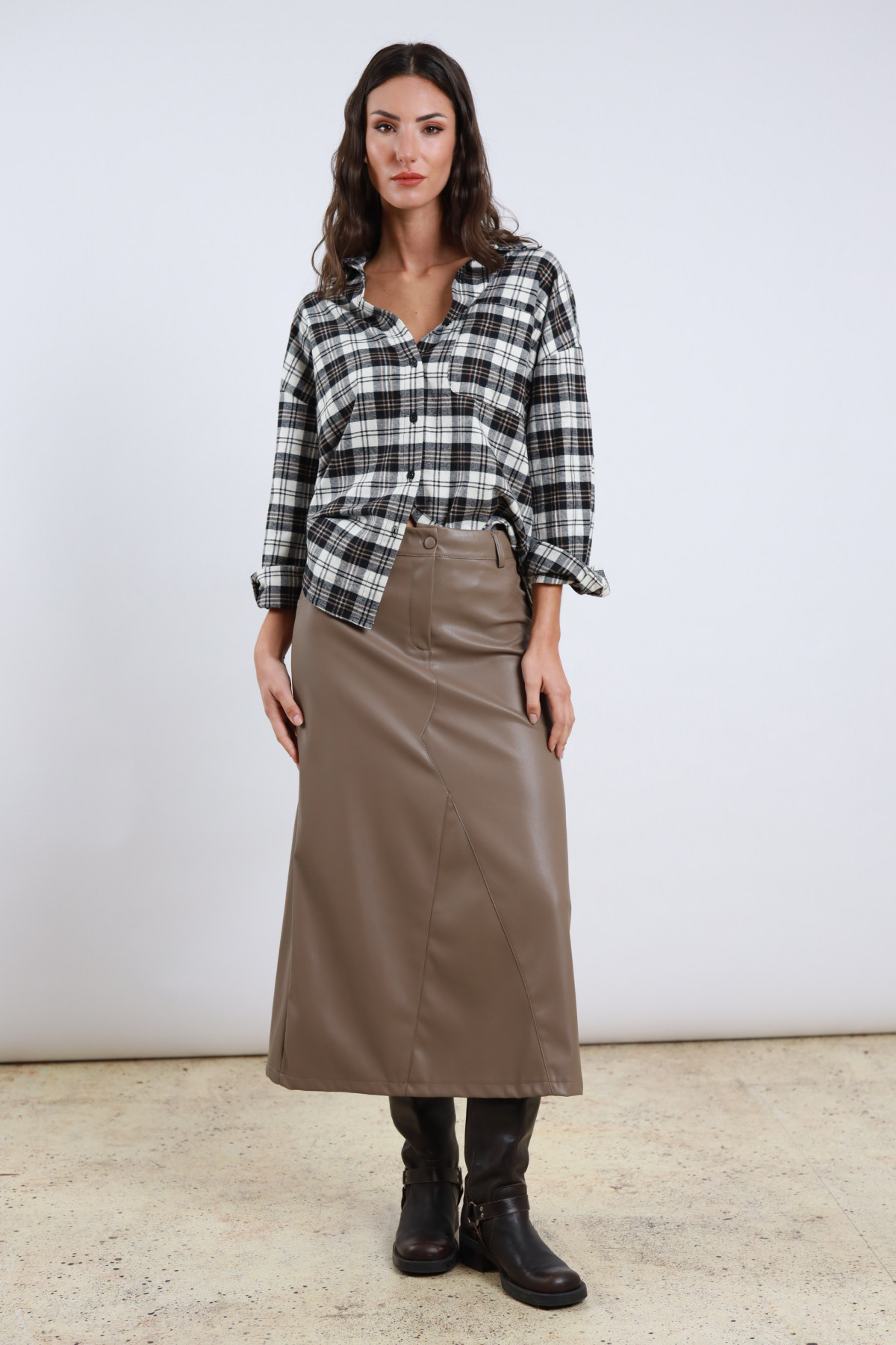 Longuette in check with slit and zip closing hidden on the back. 80%PL 15%VI 5%ea