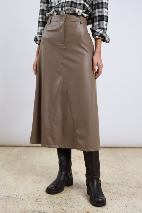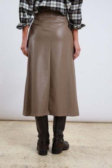 Long skirt in wheel eco -leather with lace on the bottom. 50%PL 50%VI
