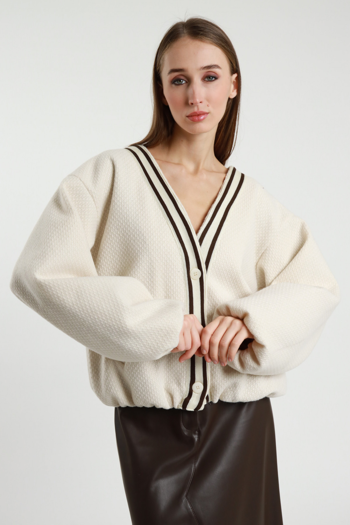 Bomberjacke mit Knopfverschluss und Seitentaschen. 57%pl 36%pa 7%vi+100%pl
