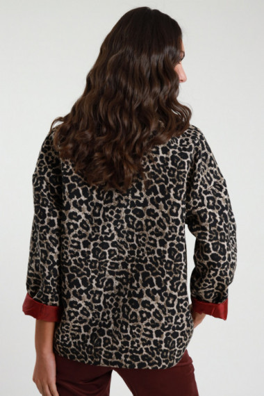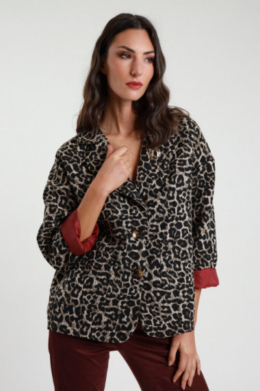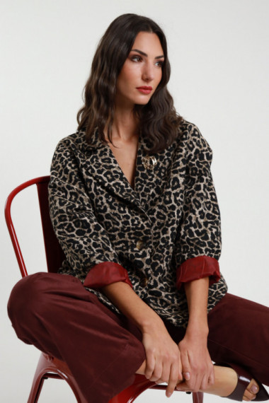 Double-breasted animal print blazer with welt pockets with flap. 97%co 3%ea
