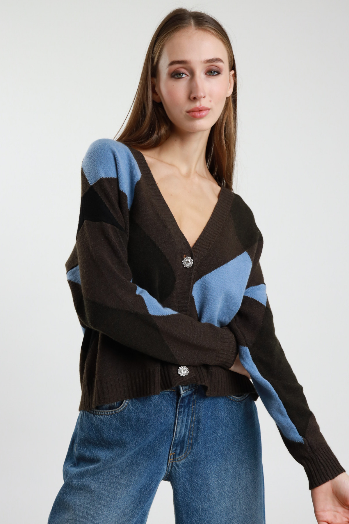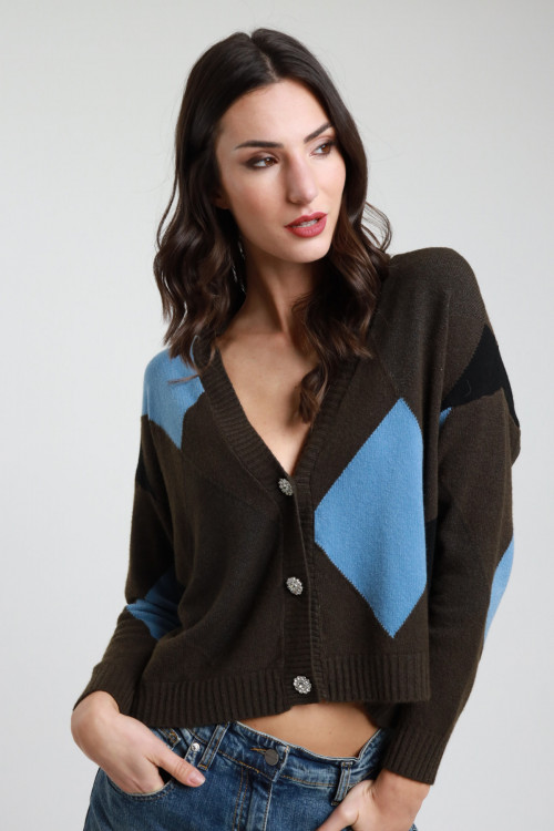 Diamant-Cardigan mit Schmuckknopfverschluss und gerippten Säumen. 100 % pl + 57 % pa 43 % vi + 50 % vi 27 % pl 23 % pa