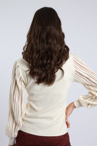 V -Neck -Hemd, halbtransparente Ballonärmel. 56%VI 28%PL 16%PA