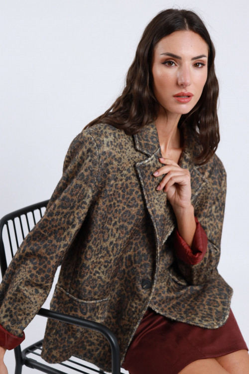 Bomber in Principe di Galles con Colletto in Velluto e Applicazione Spilla. Chiusura con Zip.