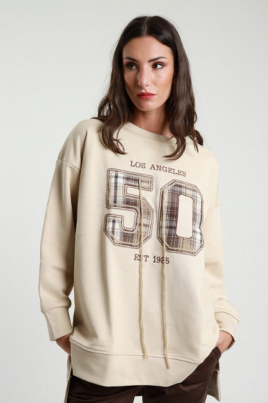 Covering sweatshirt with rabbit application with rhinestones and writings. 65%co 35%PL