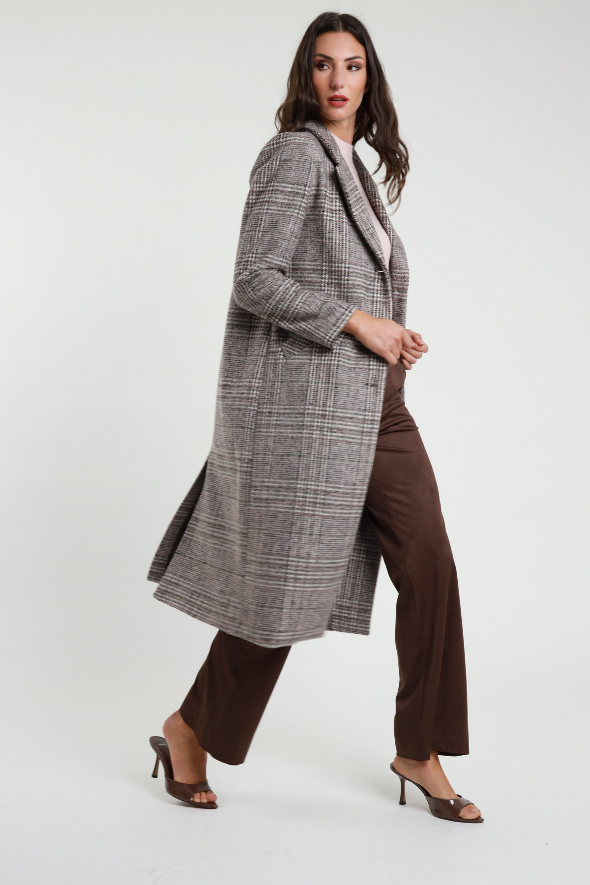 Langer Karomantel mit klassischem Revers, Ein-Knopf-Verschluss und Seitentaschen. 65%pl 30%ac 5%af+100%pl