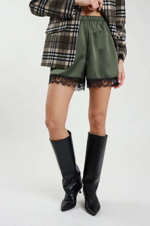 Satin -Shorts mit Spitze auf der Unterseite und der elastischen Taille. 100%pl