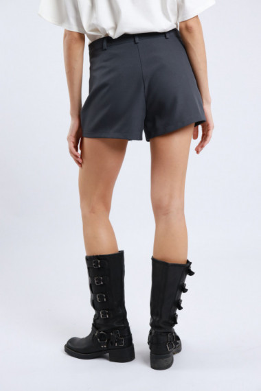Gonna Pantalone in Ecopelle Effetto Rovinato con Bottoni sul Fronte e Finte Tasche a Filetto.