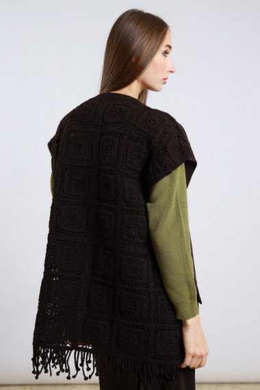 Überweste schließen mit Tasten. Fransen am Boden und zurück in Häkeln. 66%VI 30%PL 4%EA