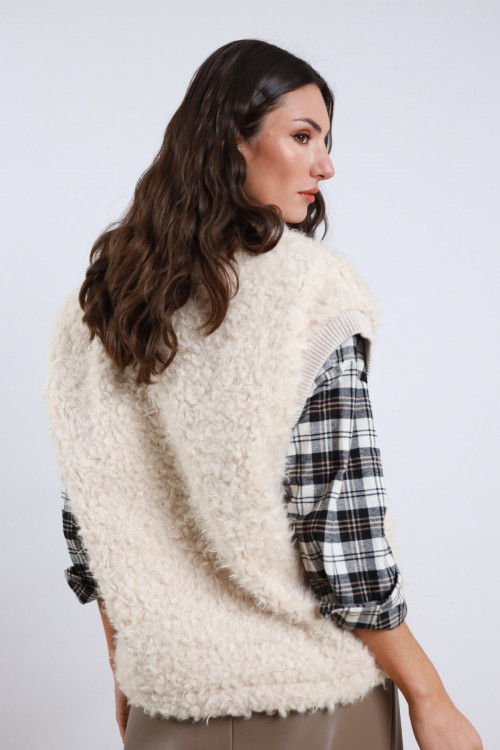Gilet in Check con Pizzo e Paillettes sul Fronte.