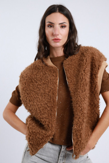 Gilet Crop Over, Chiusura 1 Bottone e Finte Tasche con Pattina.