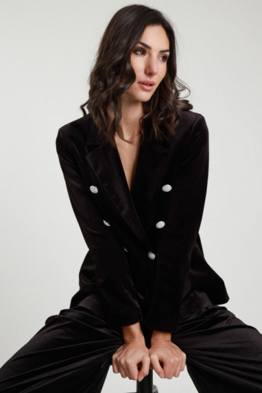 Blazer Monopetto Chiusura 3 Bottoni con Dettaglio Frange sul Rever e sulle Maniche, Tasche Filetto con Pattina.