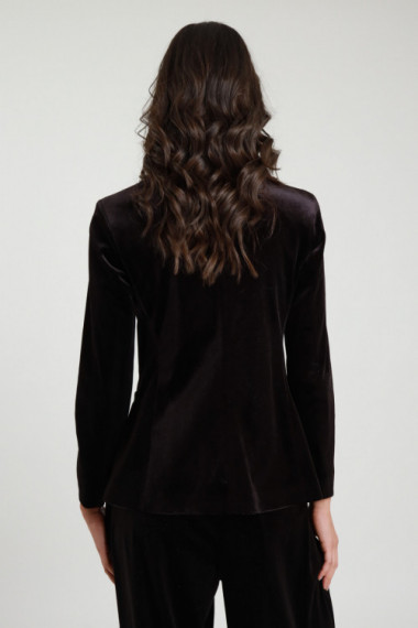 Blazer Monopetto in Velluto, Cinturina in Vita e Tasche Applicate.
