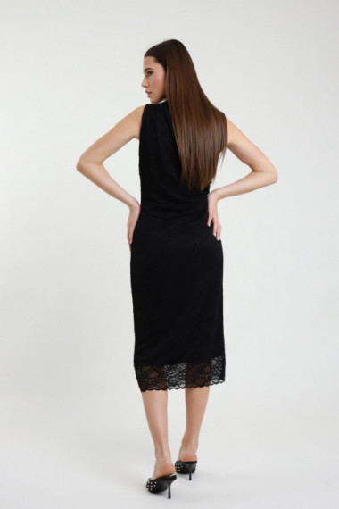 Striped knitted dress with lace on the bottom and V-neck. 100%pa+100%pc