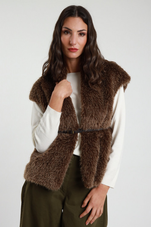Kunstpelzweste mit Taillengürtel. 100%pl+100%pl