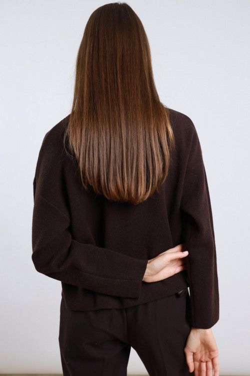 Jacket cutting sweater with flourishing revers. 75%PC 10%WO 10%VI 5%WP