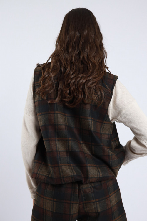 Gilet in Check con Pizzo e Paillettes sul Fronte.
