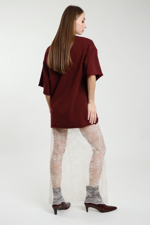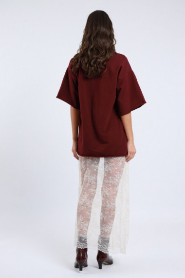 Über T-Shirt-Kleid mit langem Spitzenrock. 95%CO 5%und+100%PA