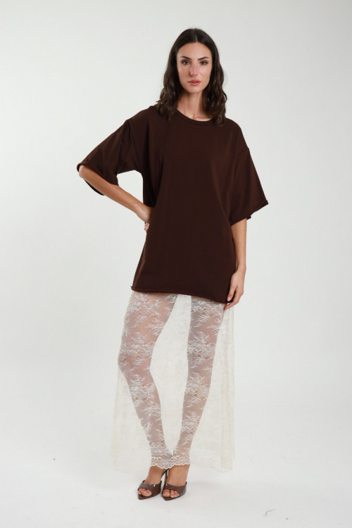Über T-Shirt-Kleid mit langem Spitzenrock. 95%CO 5%und+100%PA